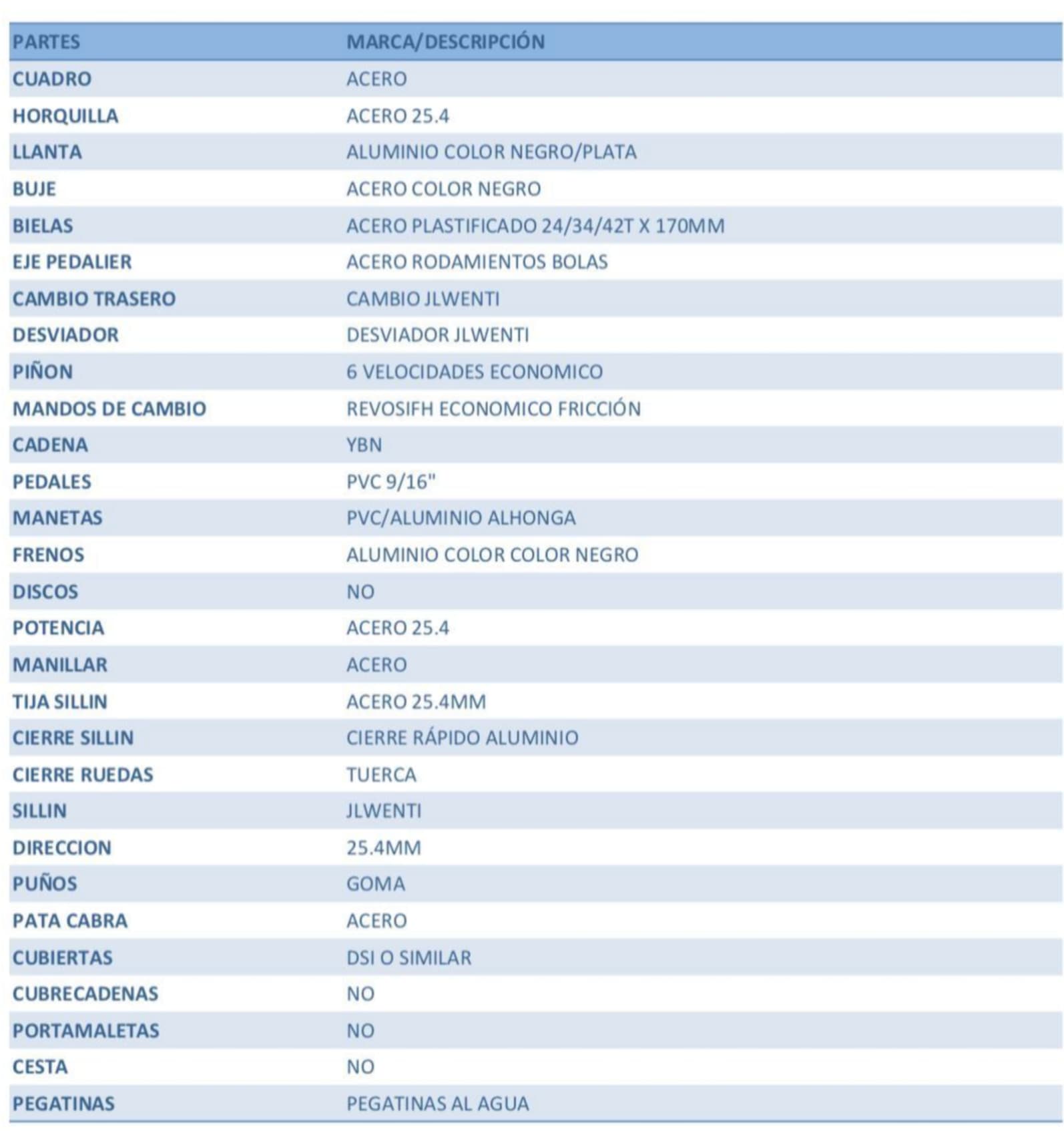 Bicicleta de 24" con cuadro en acero, 24", y un peso de 14kg
