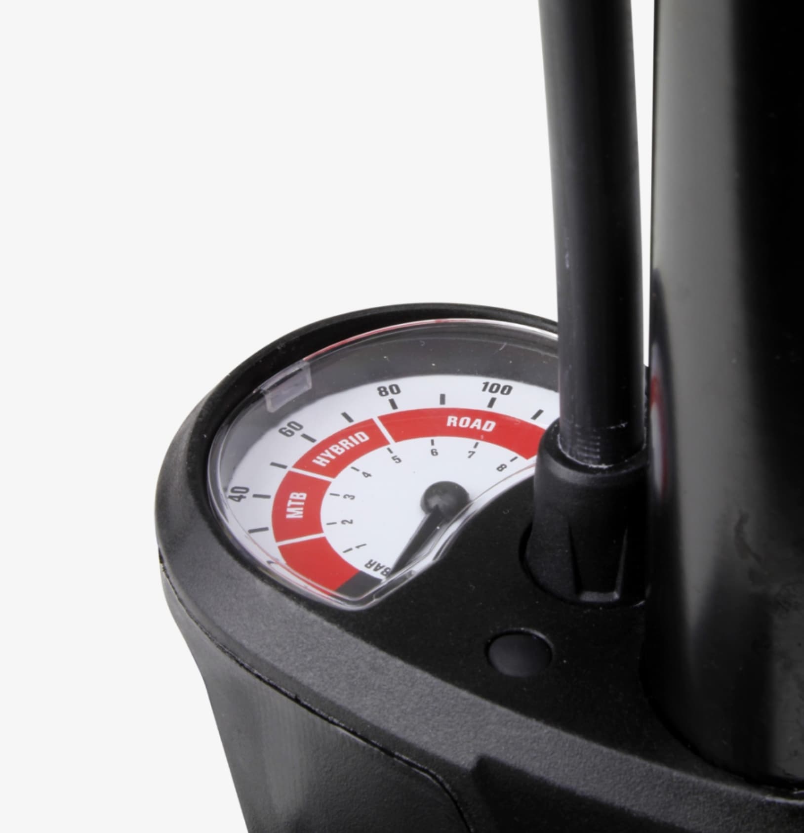 Descubre nuestra potente bomba de pie para bicicletas compatible con Presta y Schrader. Alcanza hasta 120 PSI y podrás verlo con precisión gracias a su manómetro. Su cuerpo de acero y diseño cuidado aseguran una gran durabilidad. Disfrutarás de un inflado sin apenas esfuerzo con su mango ergonómico y apoyo para pie, brindando estabilidad durante el uso. El soporte para sujetar el racor complementa su practicidad. ¡Eleva tu experiencia ciclista con esta bomba de taller, ideal para tener siempre tu bici a punto para cada aventura.