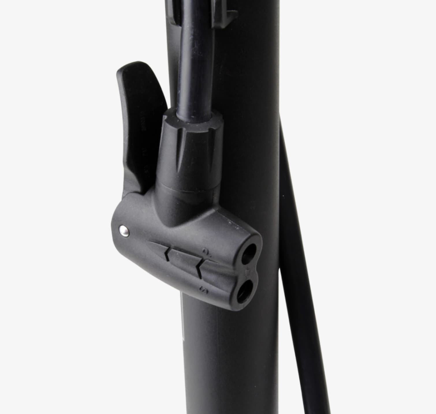 Características - Cabezal doble (compatible con Presta y Schrader) - Fijación de válvula mediante palanca - Presión máxima: 120 PSIPeso: 110g Altura: 65cm Diámetro del tubo: 35mm
